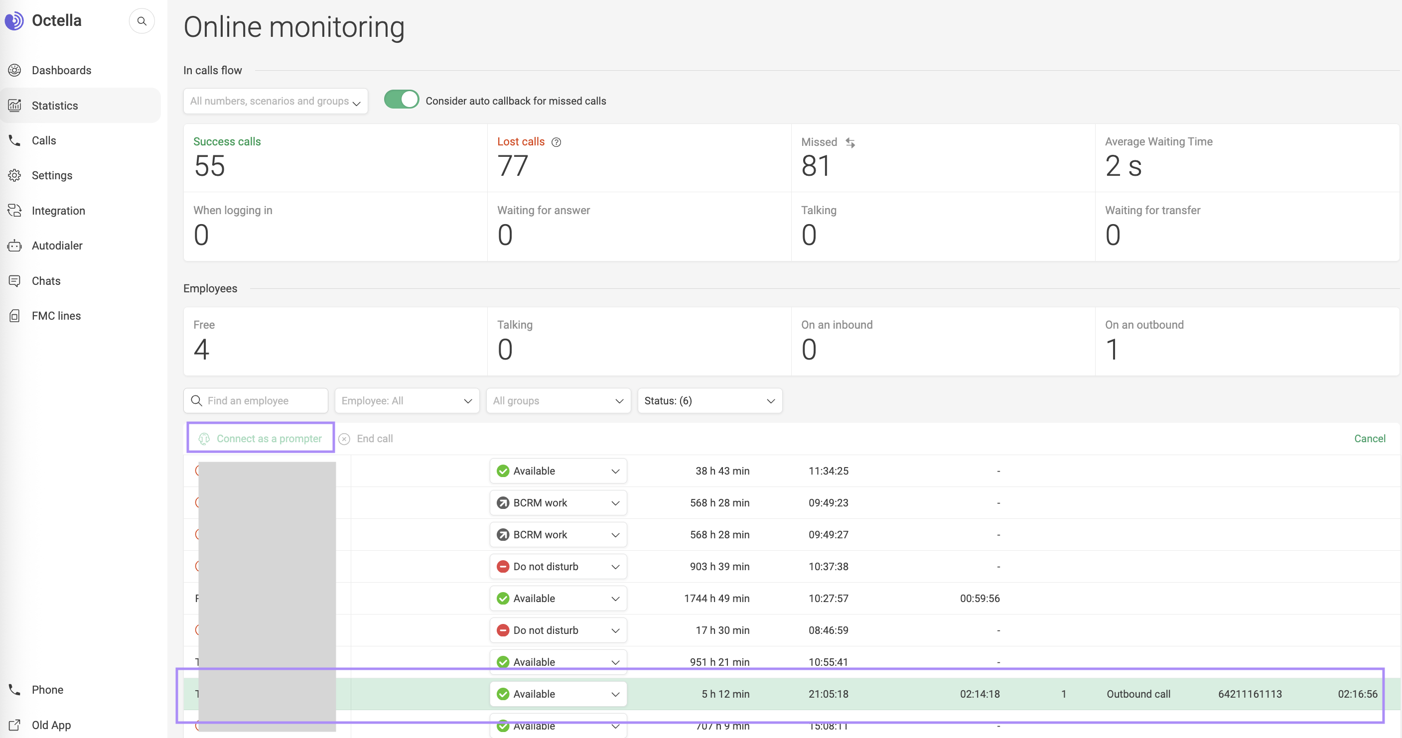 Prompter in Octella is a secret monitoring feature allowing supervisors to silently join live calls between agents and customers. Neither party can detect the supervisor’s presence. Prompter benefits: