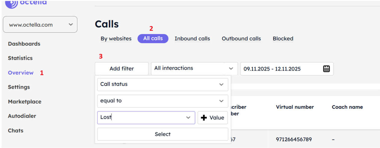 Each user of the personal account sees the Calls report in accordance with their Group permission settings. For example, if a user does not have rights to view the Settings -> Employees interface, they will not be able to see the Employee column in the report or build a filter that includes an employee data.